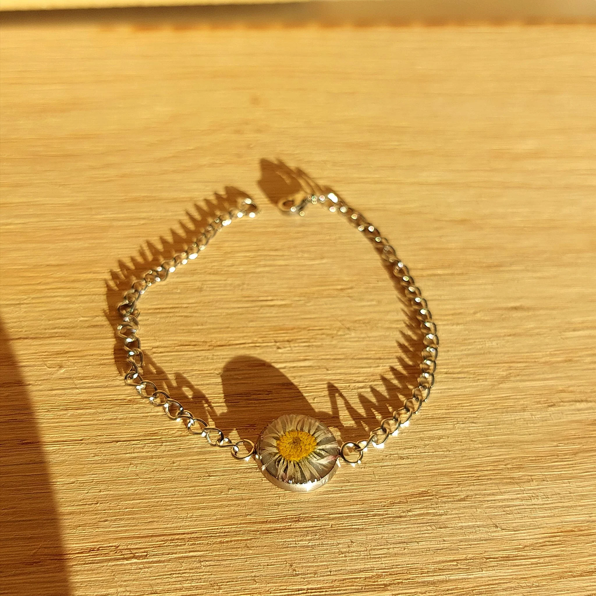 Unikatna narukvica s pravim suhim biljkama u epoxy smoli. Lagane, elegantne i izrađene od nehrđajućeg čelika – savršene za ljubiteljice prirode i ručno rađenog nakita.