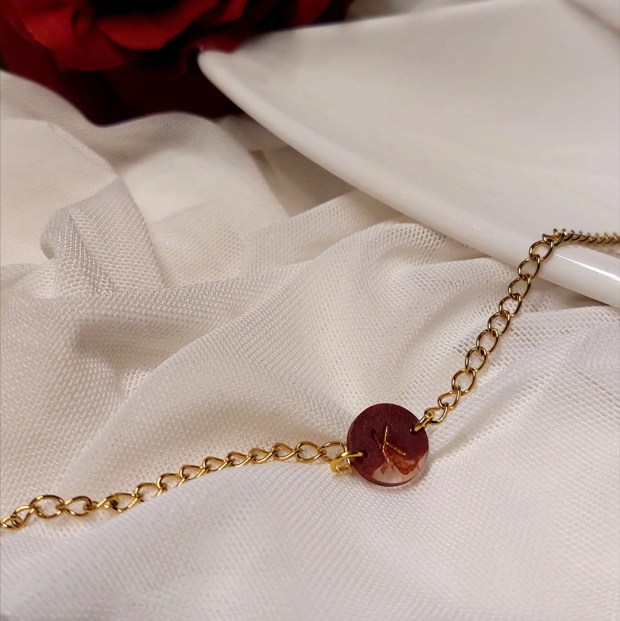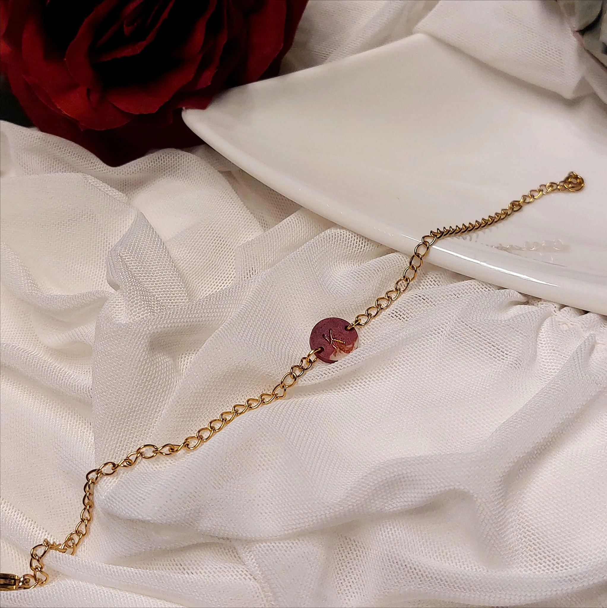 Unikatna narukvica s pravim suhim biljkama u epoxy smoli. Lagane, elegantne i izrađene od nehrđajućeg čelika – savršene za ljubiteljice prirode i ručno rađenog nakita.