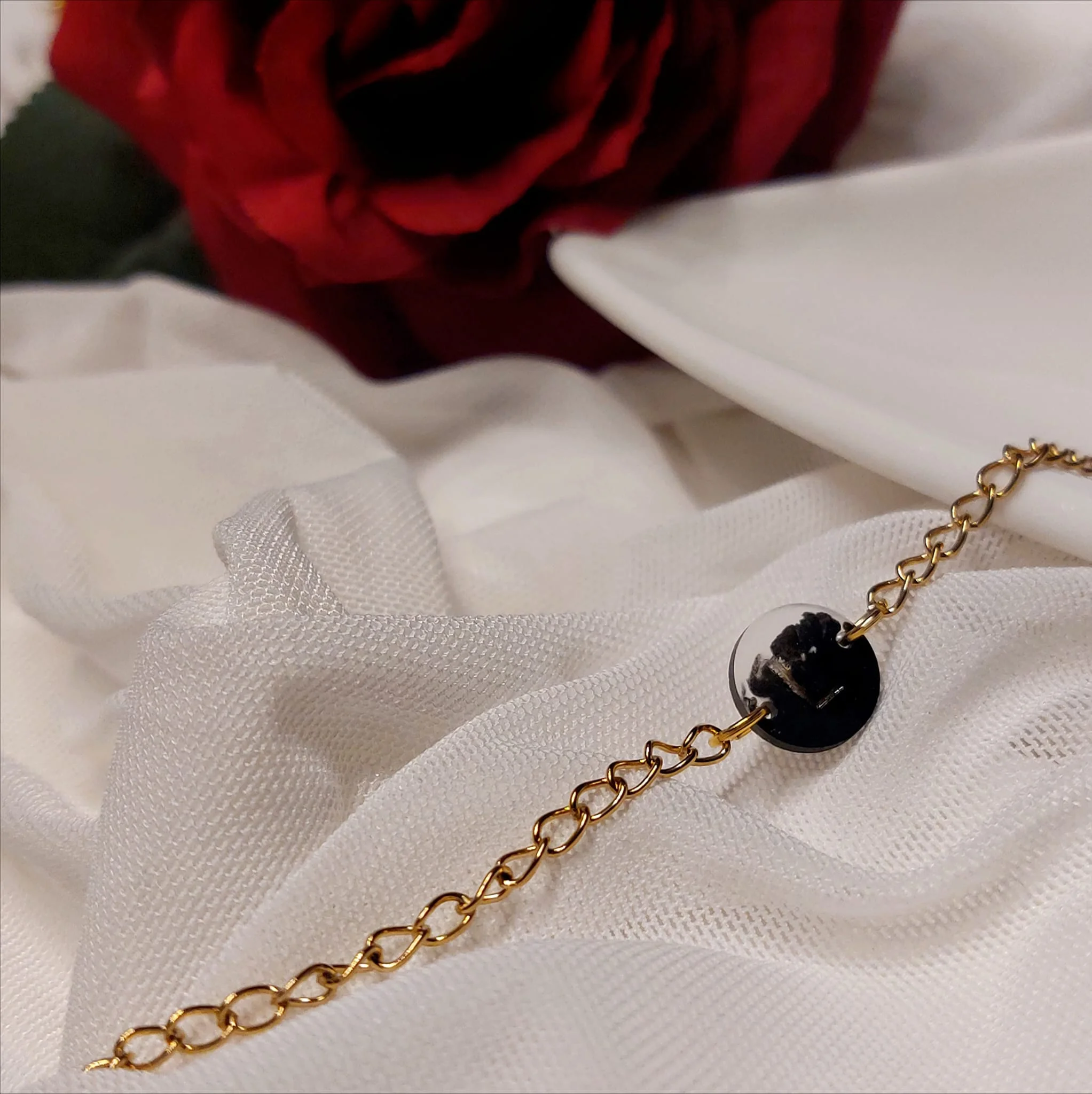 Unikatna narukvica s pravim suhim biljkama u epoxy smoli. Lagane, elegantne i izrađene od nehrđajućeg čelika – savršene za ljubiteljice prirode i ručno rađenog nakita.