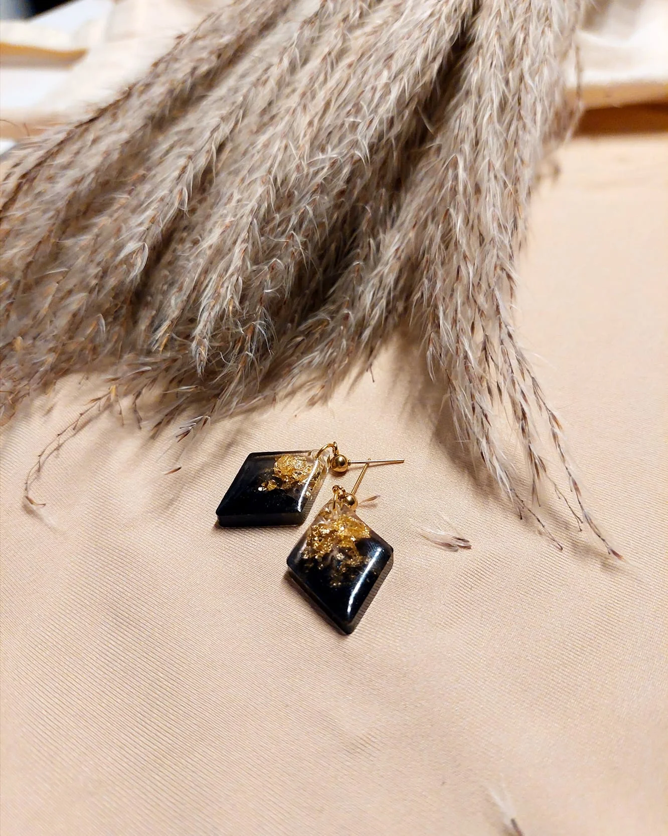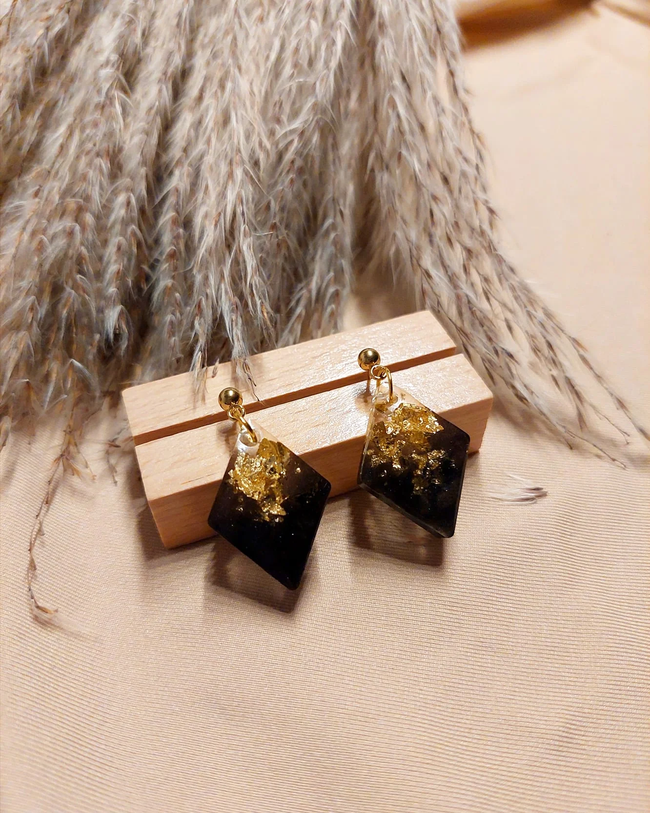 Inspirirane prirodnim svjetlosnim igrama — Naušnice Aurora spajaju prozirnu smolu i zlatne listiće u elegantan kontrast.