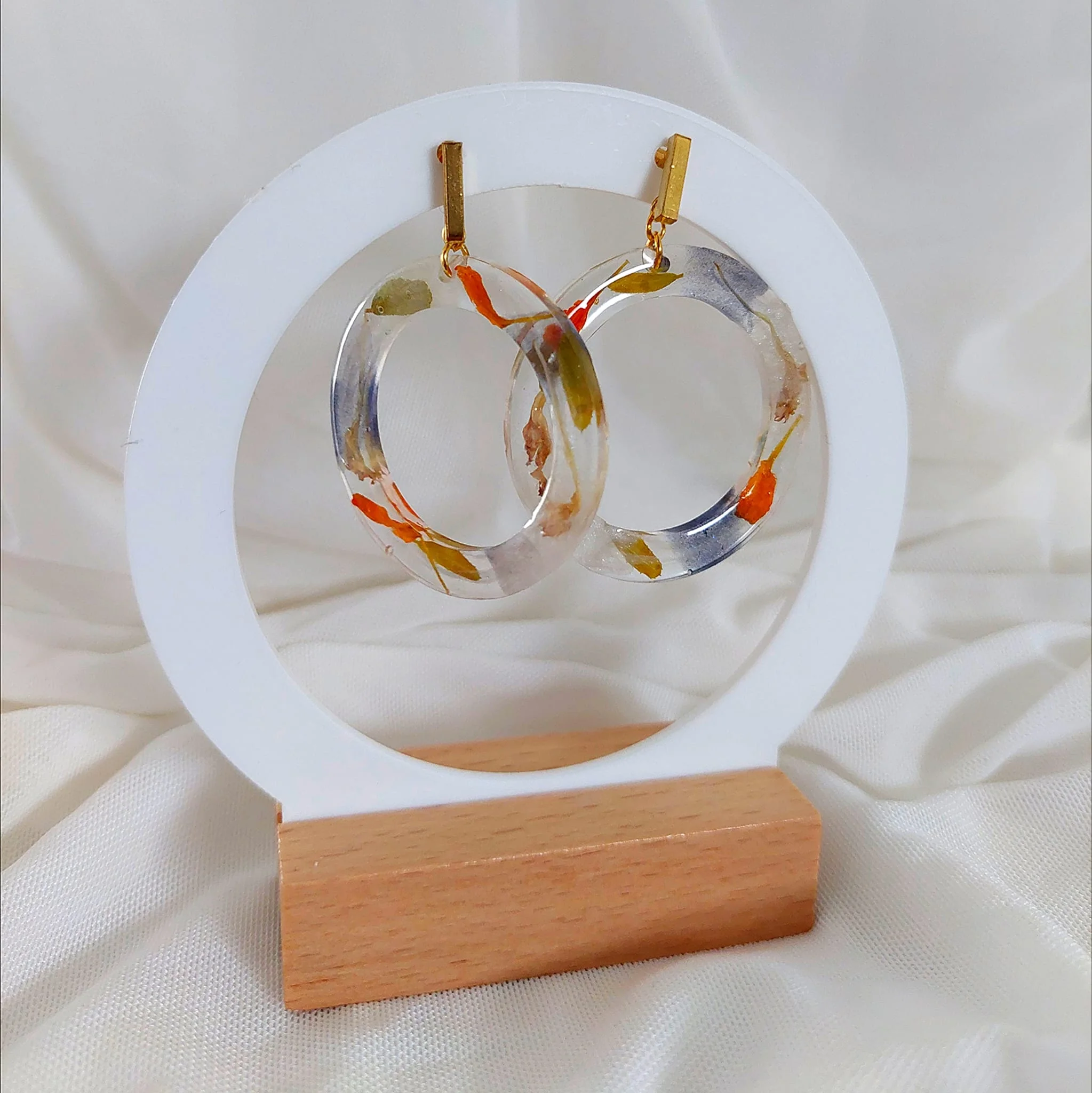 Unikatne naušnice s pravim suhim biljkama u epoxy smoli. Lagane, elegantne i izrađene od nehrđajućeg čelika – savršene za ljubiteljice prirode i ručno rađenog nakita.