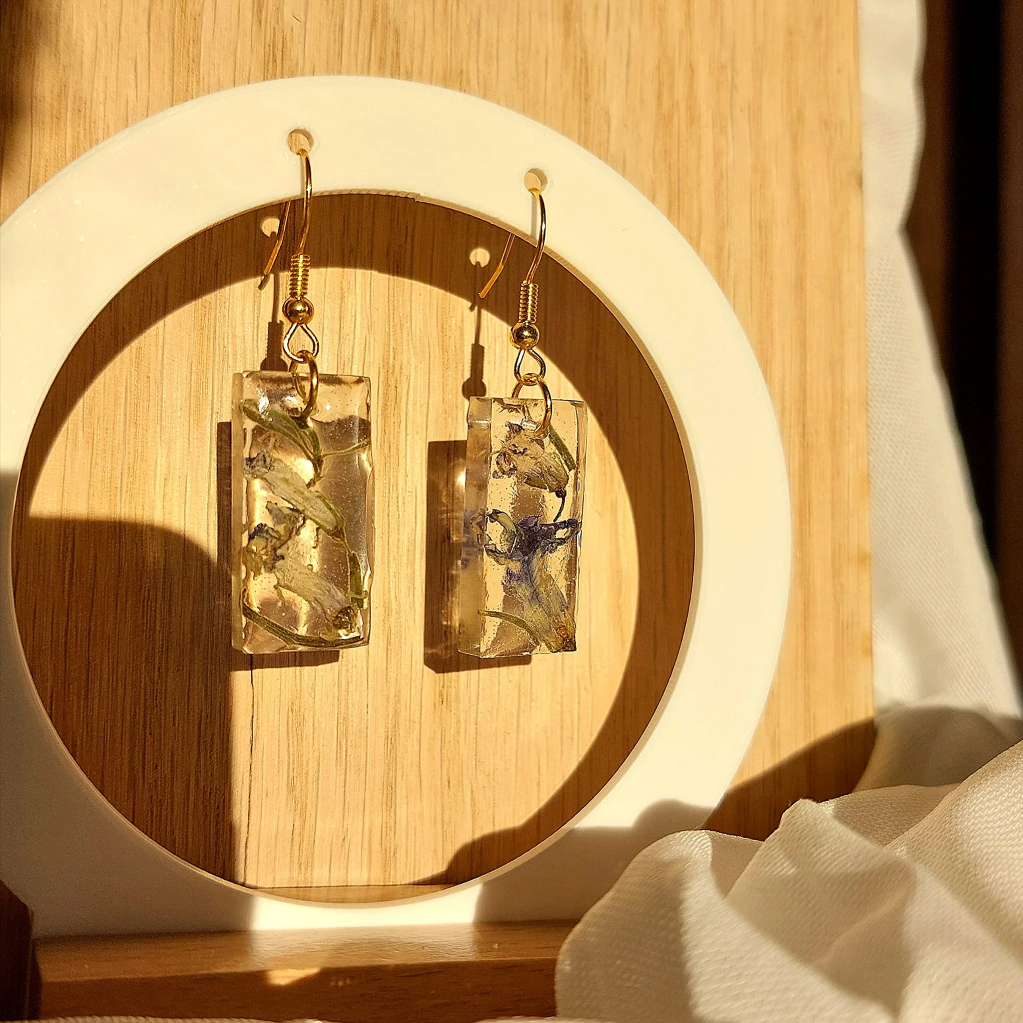 Unikatne naušnice s pravim suhim biljkama u epoxy smoli. Lagane, elegantne i izrađene od nehrđajućeg čelika – savršene za ljubiteljice prirode i ručno rađenog nakita.