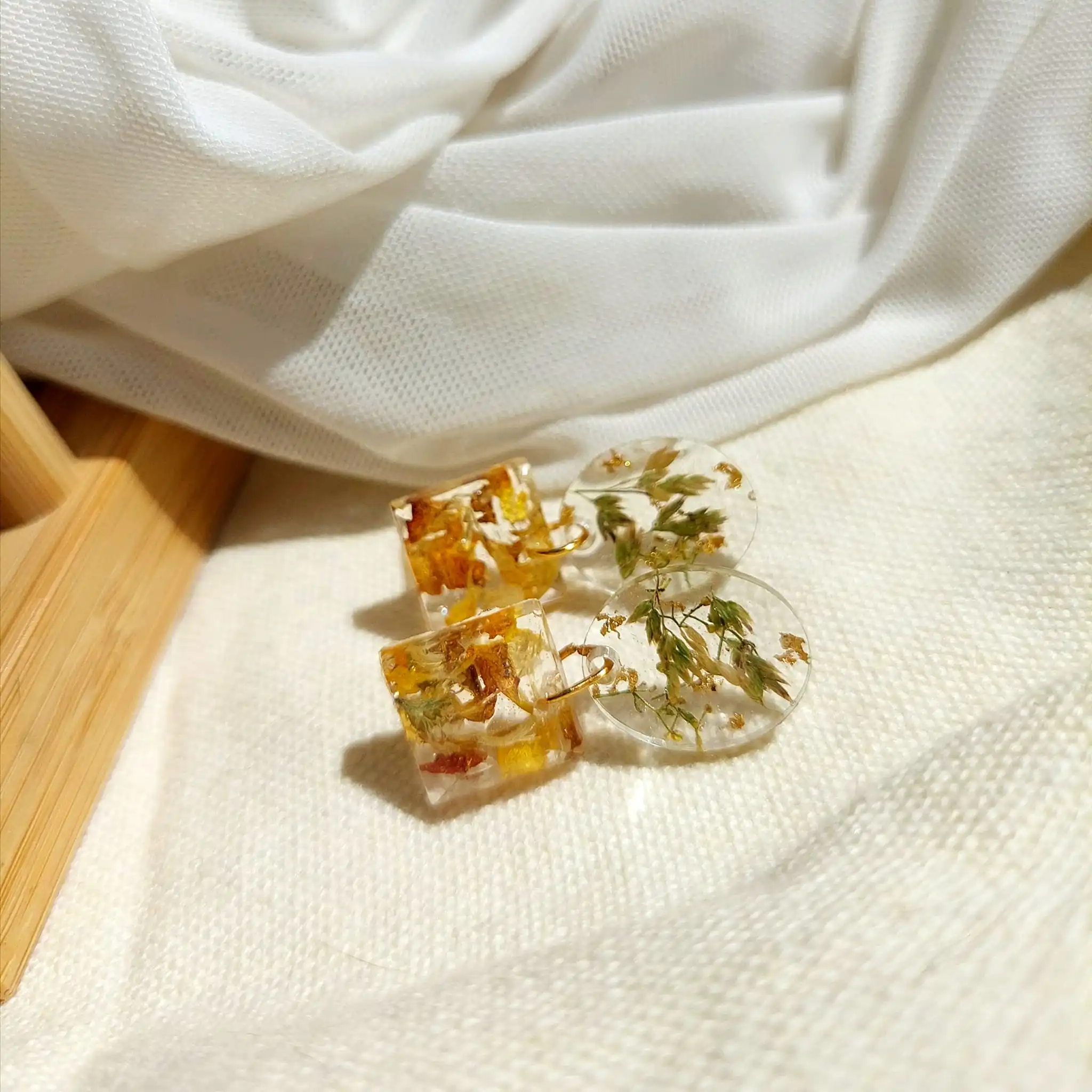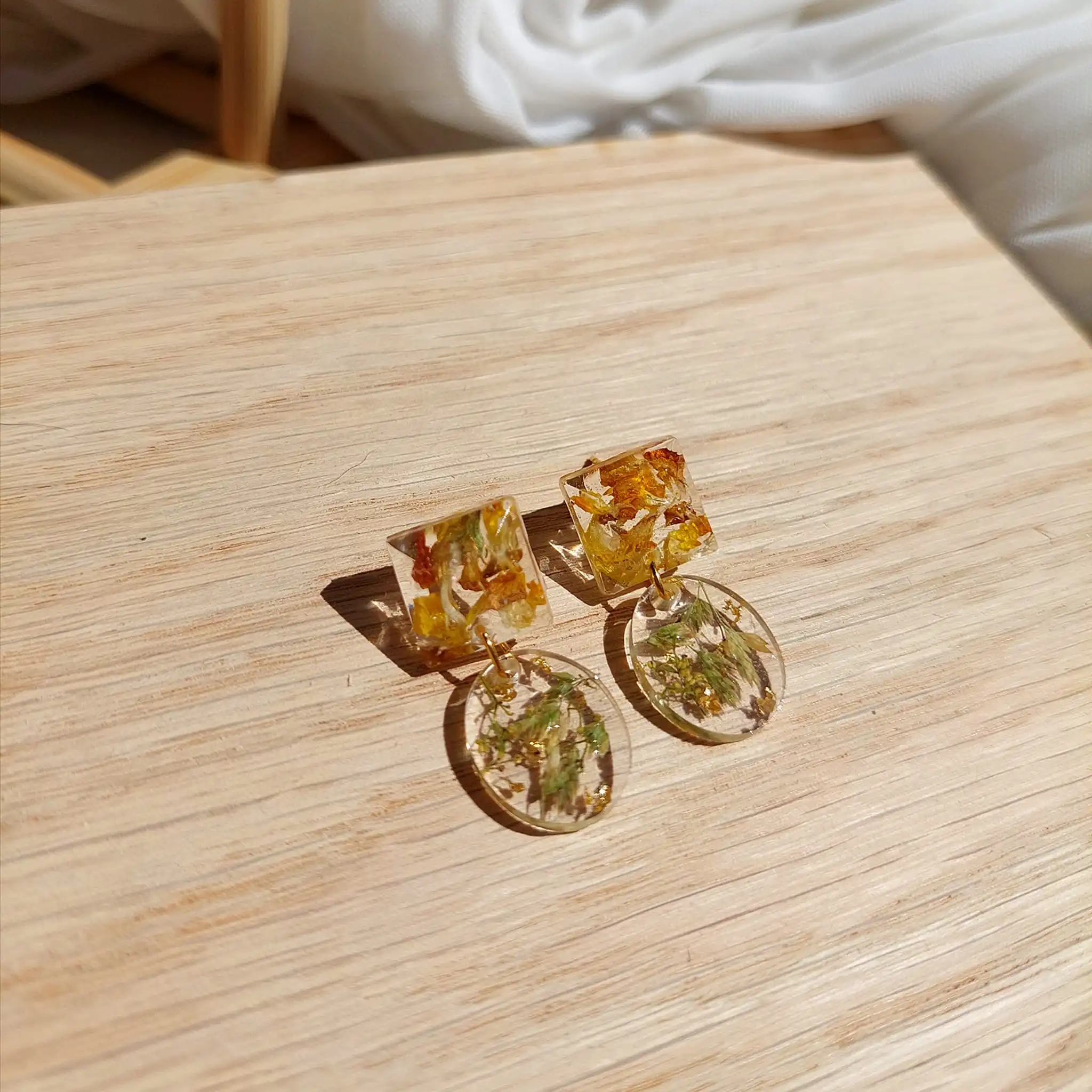 Unikatne naušnice s pravim suhim biljkama u epoxy smoli. Lagane, elegantne i izrađene od nehrđajućeg čelika – savršene za ljubiteljice prirode i ručno rađenog nakita.