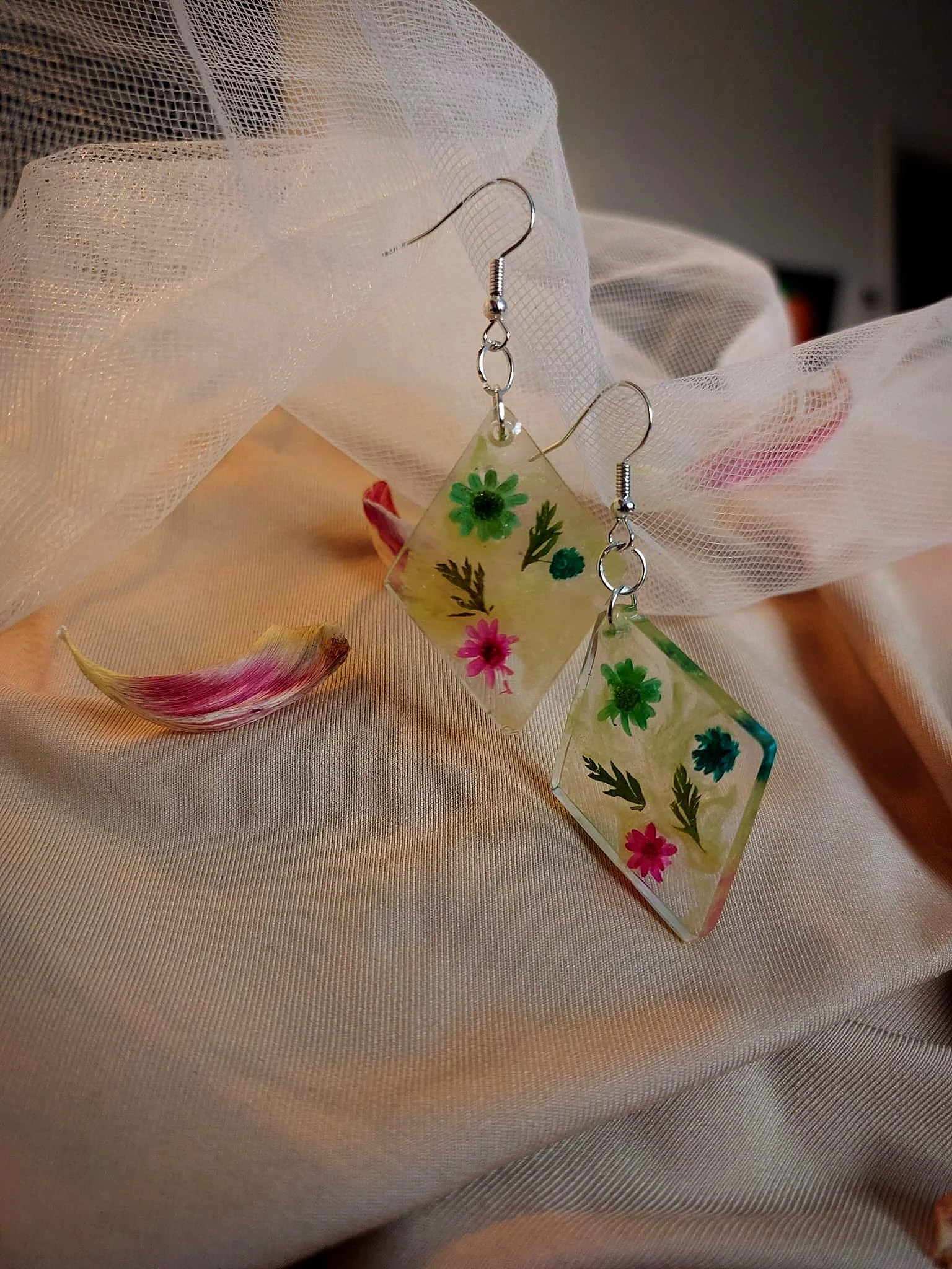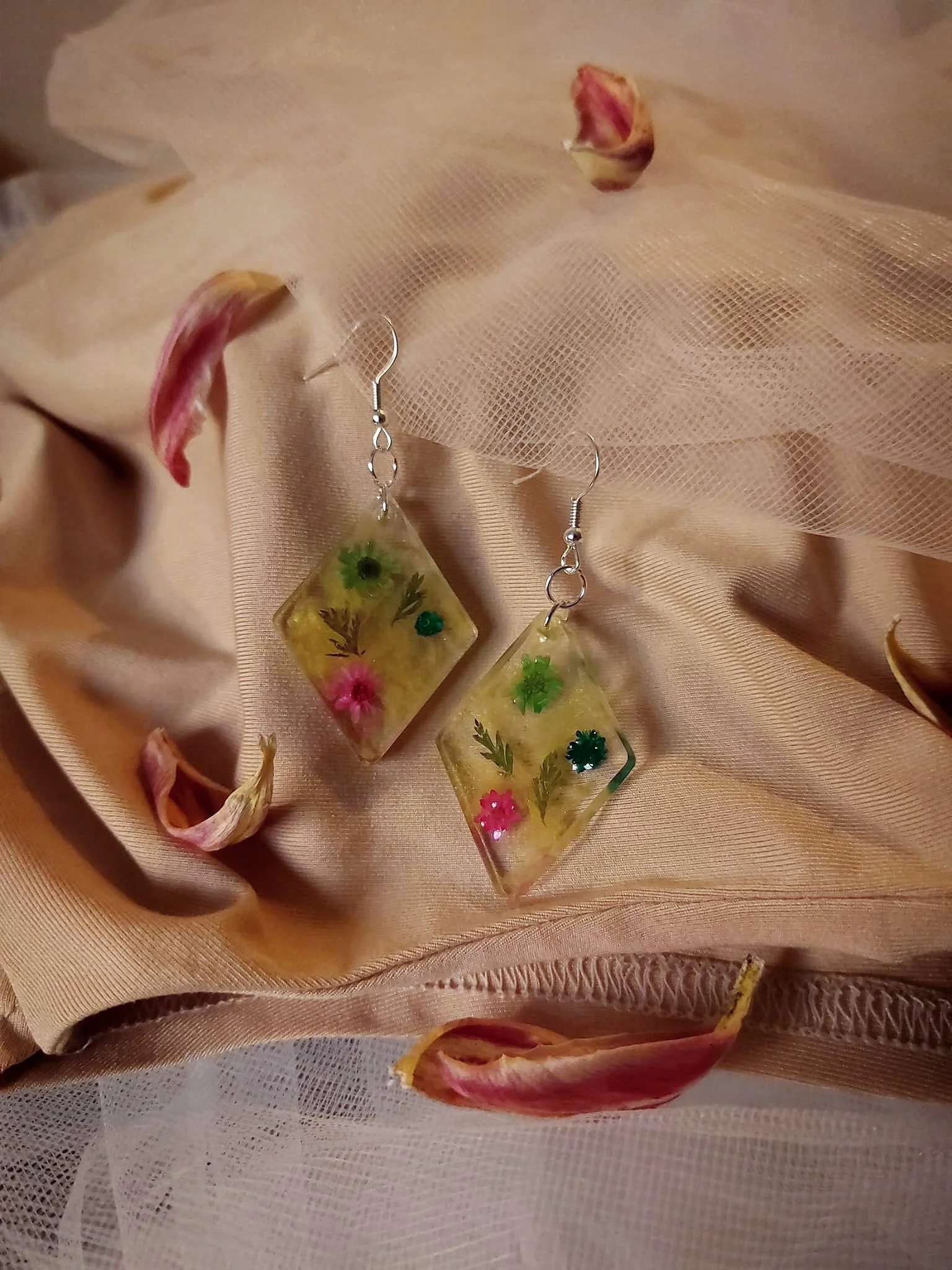 Unikatne naušnice s pravim suhim biljkama u epoxy smoli. Lagane, elegantne i izrađene od nehrđajućeg čelika – savršene za ljubiteljice prirode i ručno rađenog nakita.