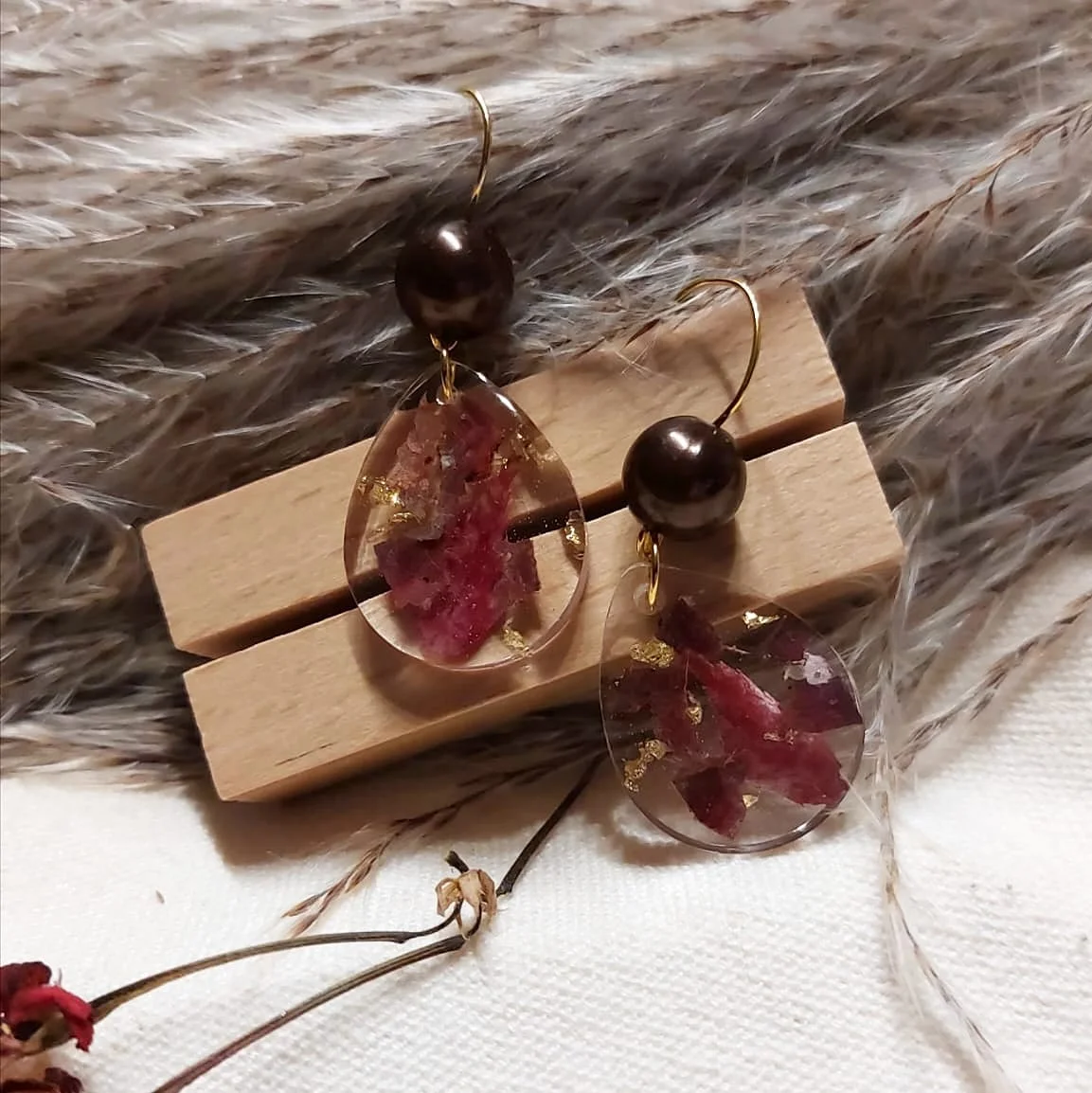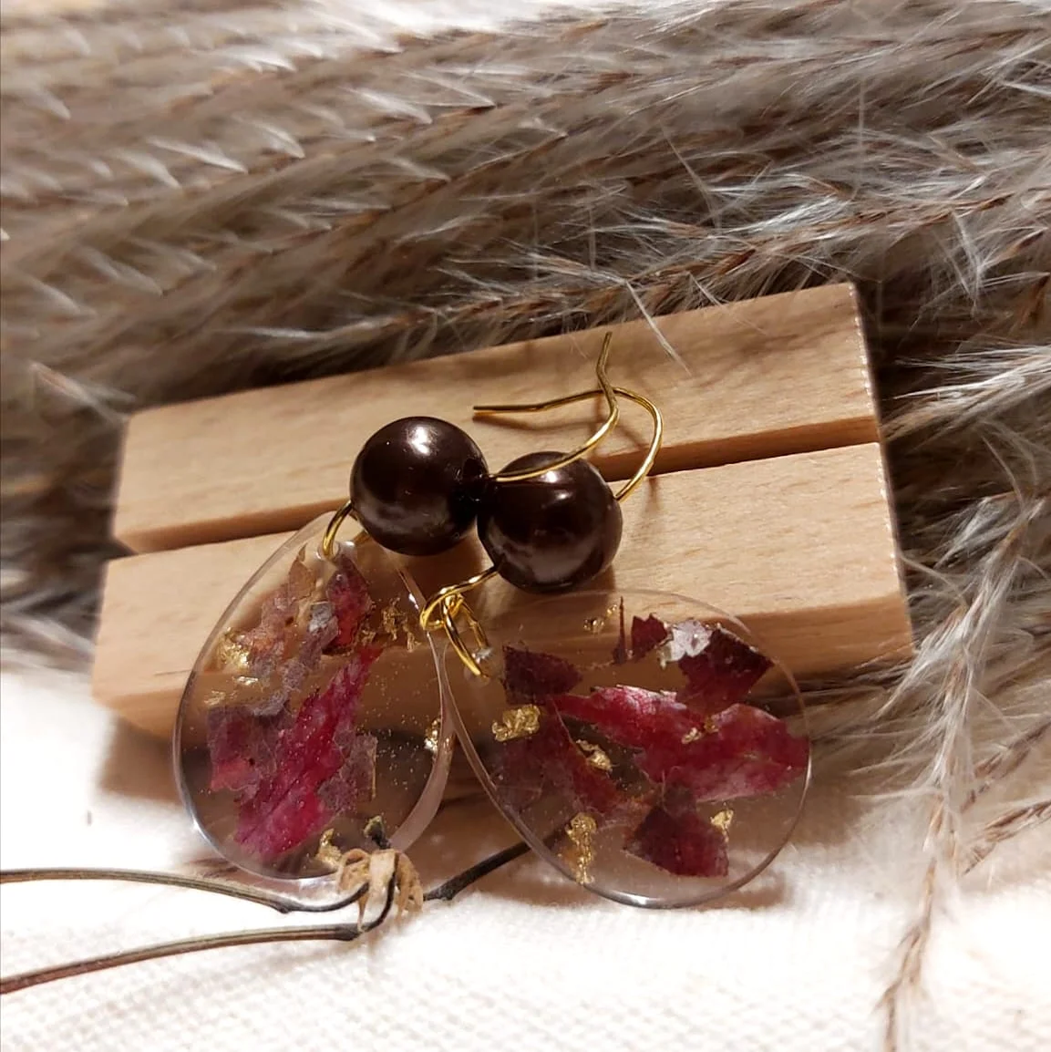 Unikatne naušnice s pravim suhim biljkama u epoxy smoli. Lagane, elegantne i izrađene od nehrđajućeg čelika – savršene za ljubiteljice prirode i ručno rađenog nakita.