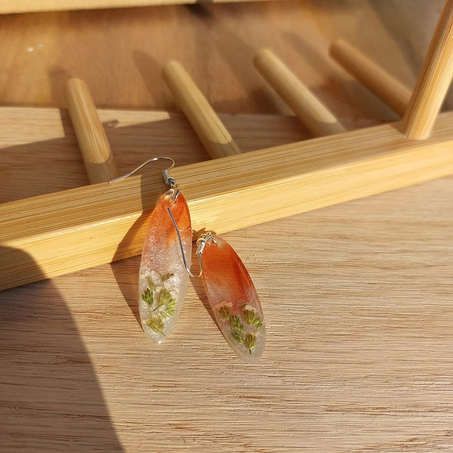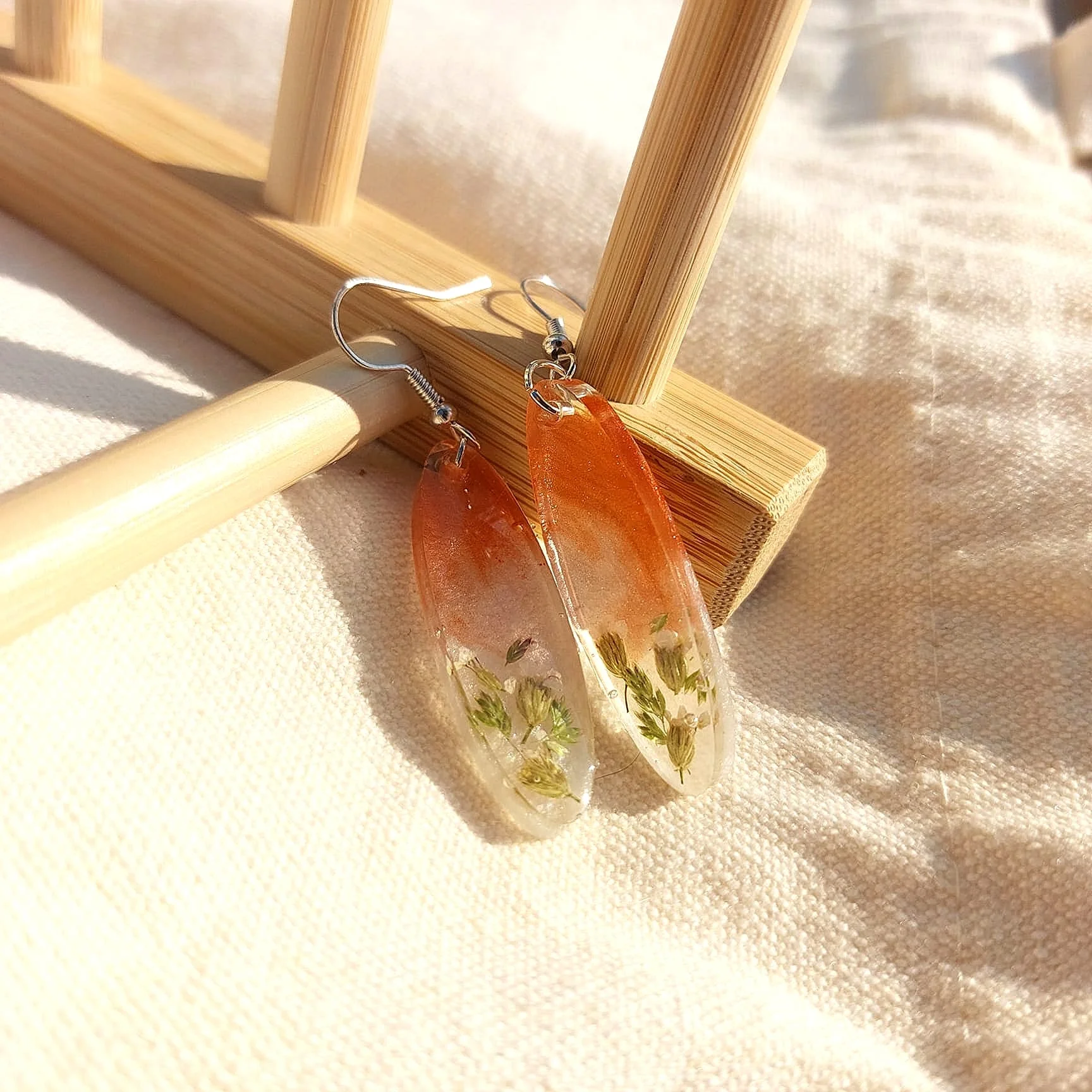 Unikatne naušnice s pravim suhim biljkama u epoxy smoli. Lagane, elegantne i izrađene od nehrđajućeg čelika – savršene za ljubiteljice prirode i ručno rađenog nakita.