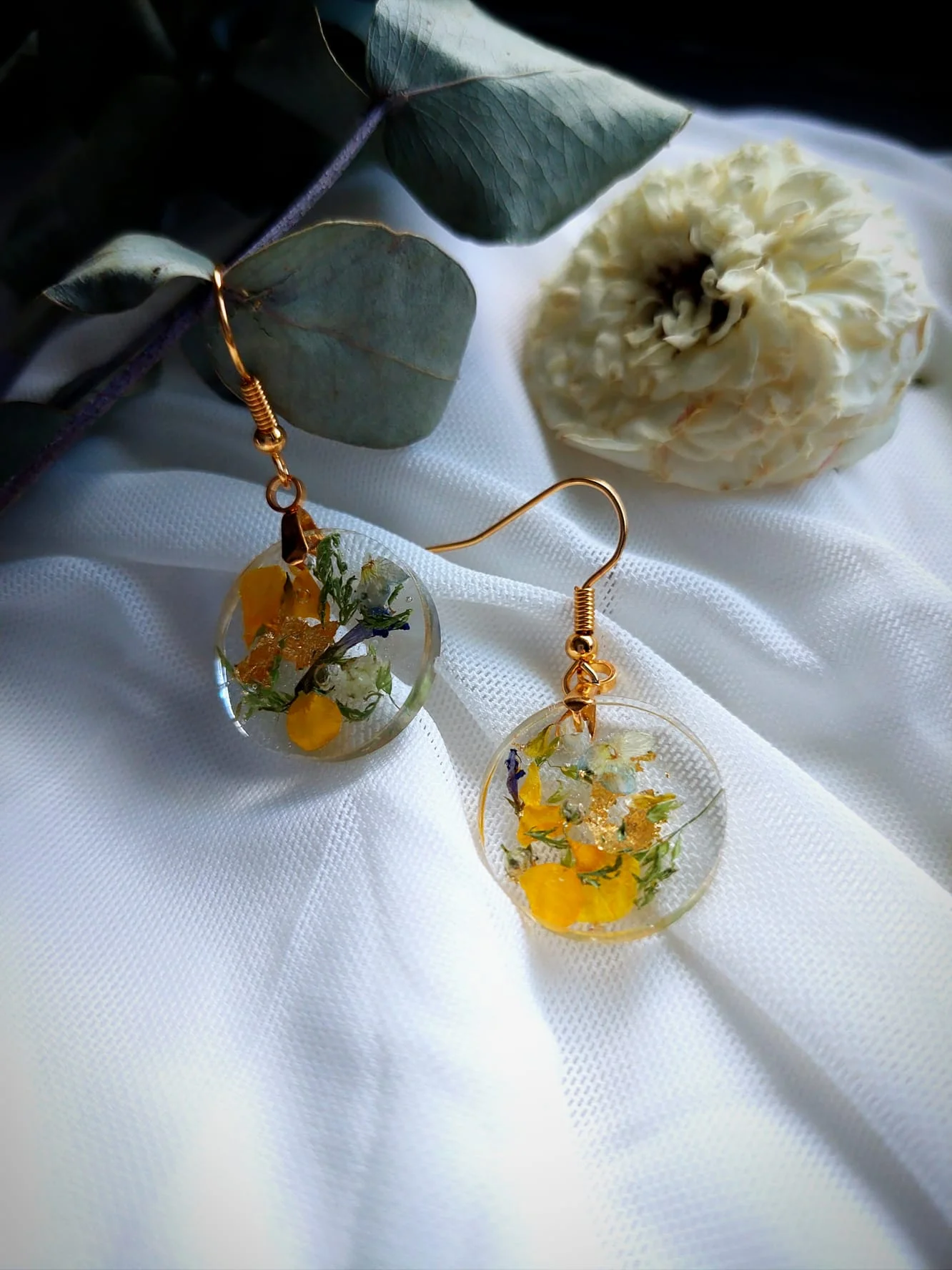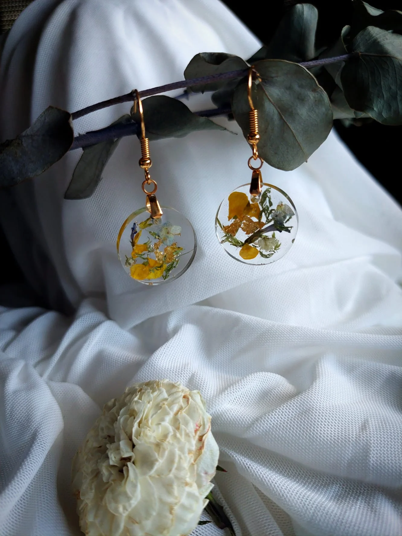 Unikatne naušnice s pravim suhim biljkama u epoxy smoli. Lagane, elegantne i izrađene od nehrđajućeg čelika – savršene za ljubiteljice prirode i ručno rađenog nakita.