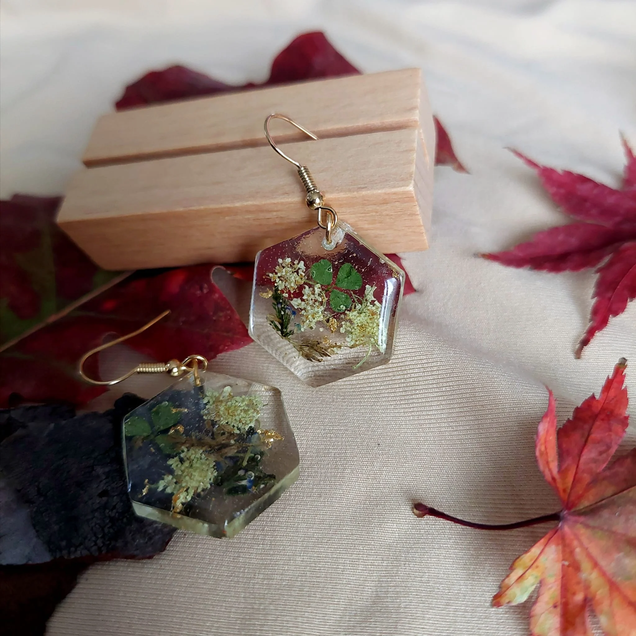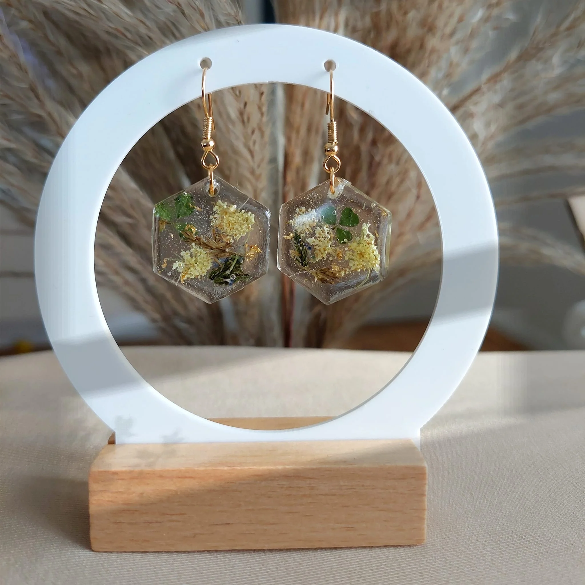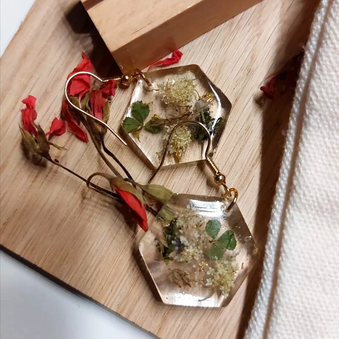 Unikatne naušnice s pravim suhim biljkama u epoxy smoli. Lagane, elegantne i izrađene od nehrđajućeg čelika – savršene za ljubiteljice prirode i ručno rađenog nakita.