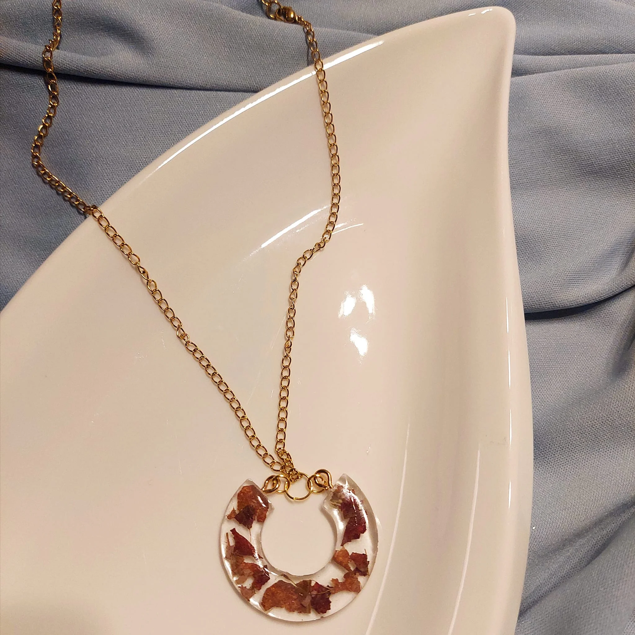 Unikatna ogrlica s pravim cvijećem, sačuvanim u epoxy smoli. Nježan prirodni detalj koji unosi sunce u svaki stil. Ručni rad, lančić od nehrđajućeg čelika.