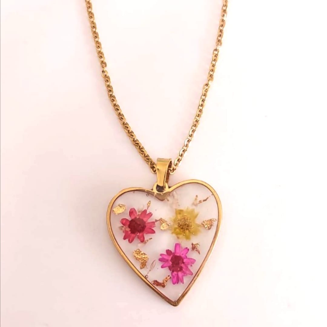 Unikatna ogrlica s pravim cvijećem, sačuvanim u epoxy smoli. Nježan prirodni detalj koji unosi sunce u svaki stil. Ručni rad, lančić od nehrđajućeg čelika.