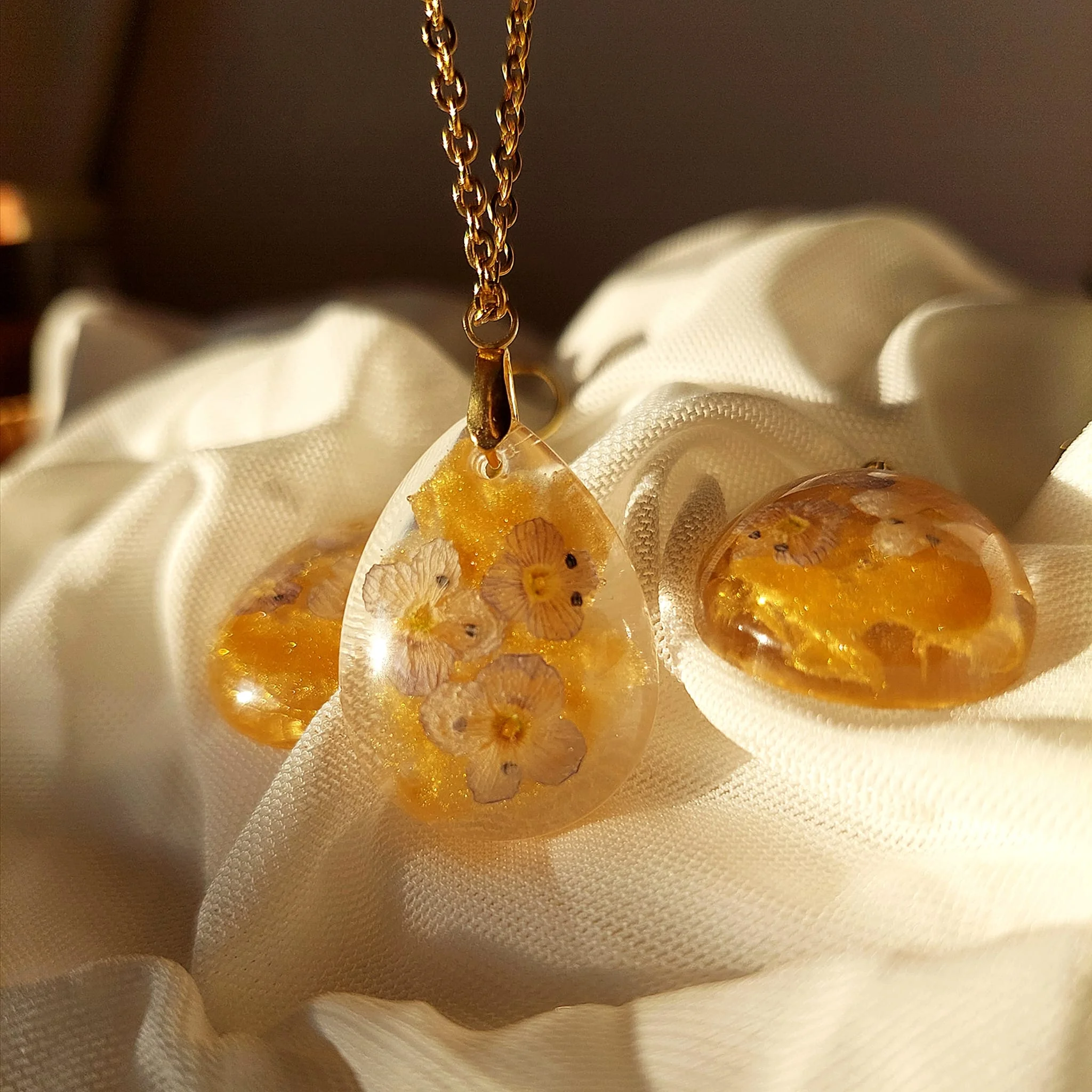 Ovaj set u obliku suze čuva sitne potočnice, simbol sjećanja, nježnosti i vjernosti, dok zlatni detalji donose toplinu prvih sunčevih zraka.